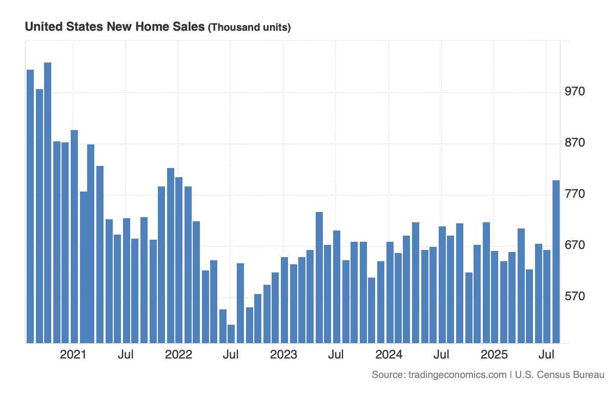 Still a low-transaction environment. Existing-home sales have bounced off the absolute lows but remain well below 2010s norms; new-home sales have had a couple of strong prints (August’s 800k SAAR stands out), but we are not in a new boom.