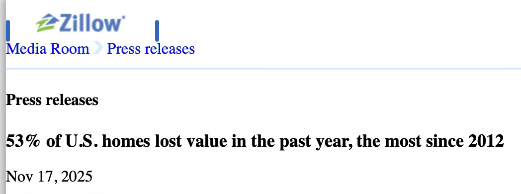 Zillow “53% of homes lost value” research: https://www.zillow.com/research/home-value-decline-35724/